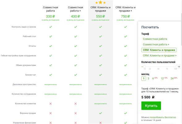 - «CRM: Клиенты и продажи +» – 750 ₽/мес. за лицензию.