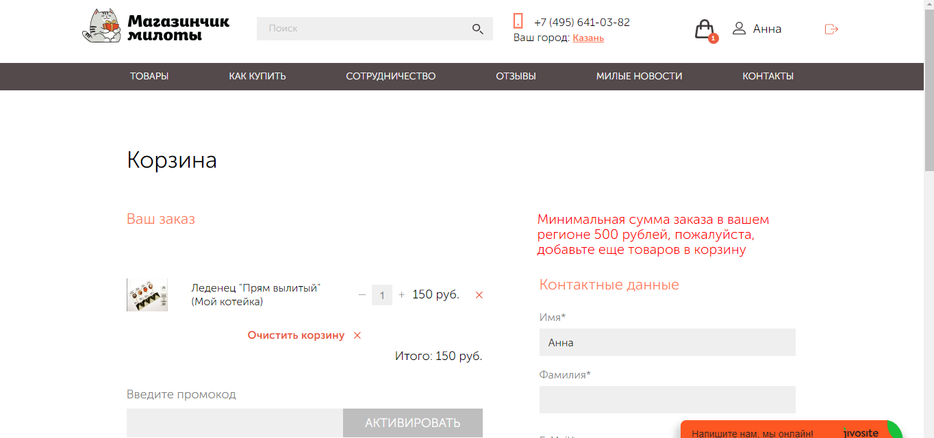 Магазинчик Милоты — промокод на скидку 20% на весь ассортимент