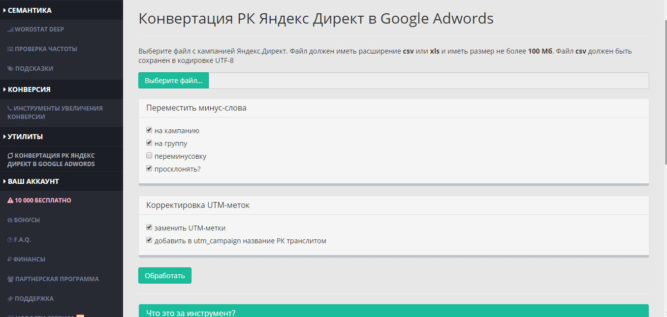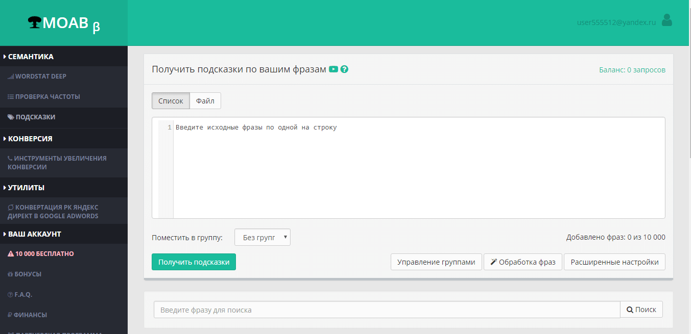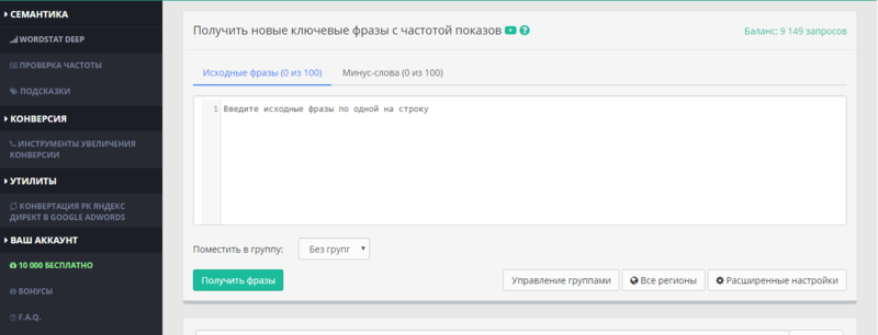 Пользоваться сервисом и начать парсинг ключевых фраз довольно просто.