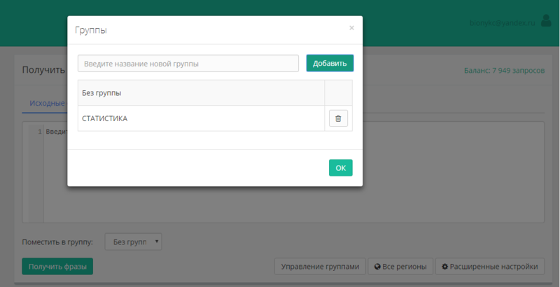 Для улучшения поиска и выгрузки требуемой информации, необходимо будет создать группы. Чтобы это сделать переходим по вкладке “Управление группами” и в открывшемся окне создаем название группы. Также отсюда можно управлять ими и удалять ненужные.