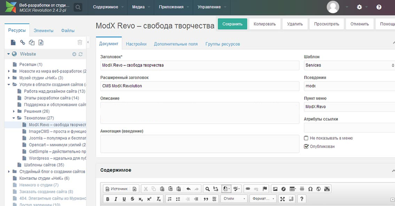 В общем «MODX» достаточно гибкий ресурс по статусности сопоставимый с Фреймворками. Управление контентом придется по силам даже неопытным пользователям, обладающим стандартными навыками пользователя офисным ПО, сам же процесс разработки будет по силам даже не каждому разработчику с начинающими навыками.