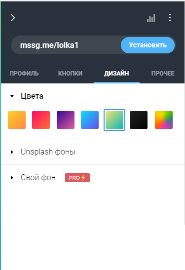 Для вашего удобства, есть возможность настройки фона визитки: ее цвет, градиент, выбрать из каталога изображение или же загрузить свое фото. Ссылки на контакты оформлены в виде иконок, чтобы легче их находить. Если в списке сервиса вы не обнаружите значка для вашего мессенджера, то есть возможность добавления нужного изображения.
