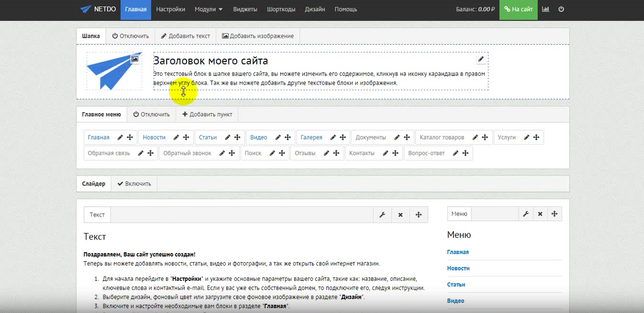 Netdo — бесплатный конструктор сайтов без привлечения программистов