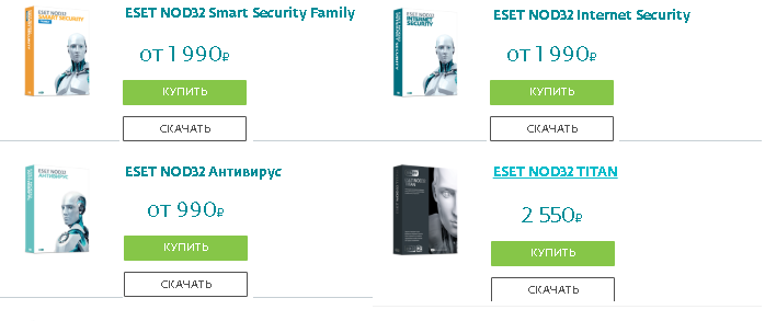 - «ESET NOD32 TITAN» - стоимость лицензии составляет 2550 рублей, пакет премиум класса, позволяет обеспечить максимальный уровень защиты персональных компьютеров и мобильных устройств. Пакет включает рад основных опция, а также нововведений: