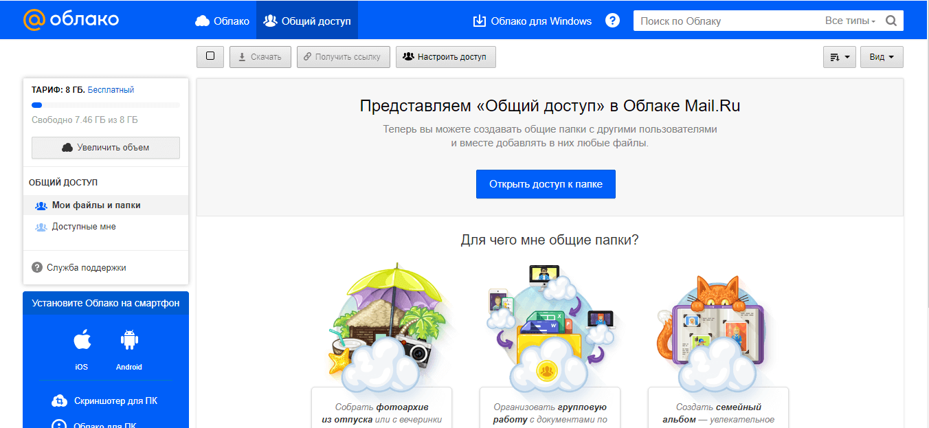 - Создание публичной ссылки – открывает еще 10 дополнительных гигабайт;