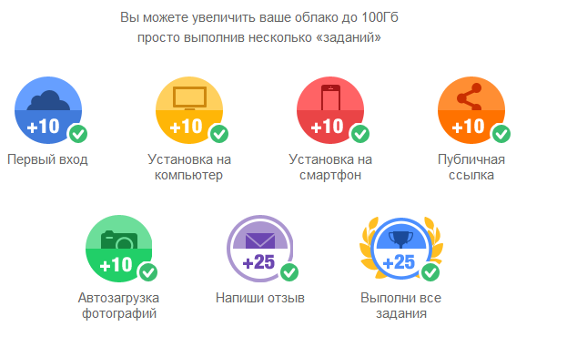 - При условии выполнения всех шагов задания, пользователю предоставляются последние 25 бесплатных гигабайт выделенного пространства в облачном хранилище.