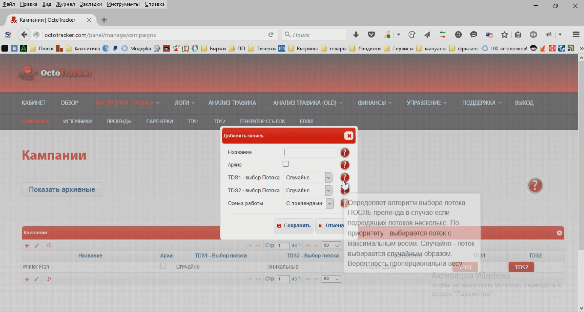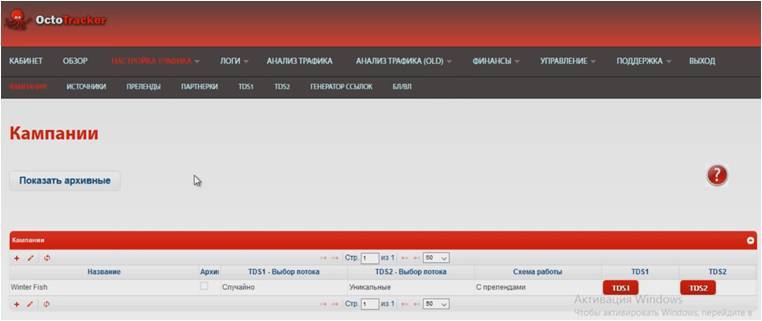 Кампании предназначены для того, чтобы отделять потоки трафика и настроить TDS.