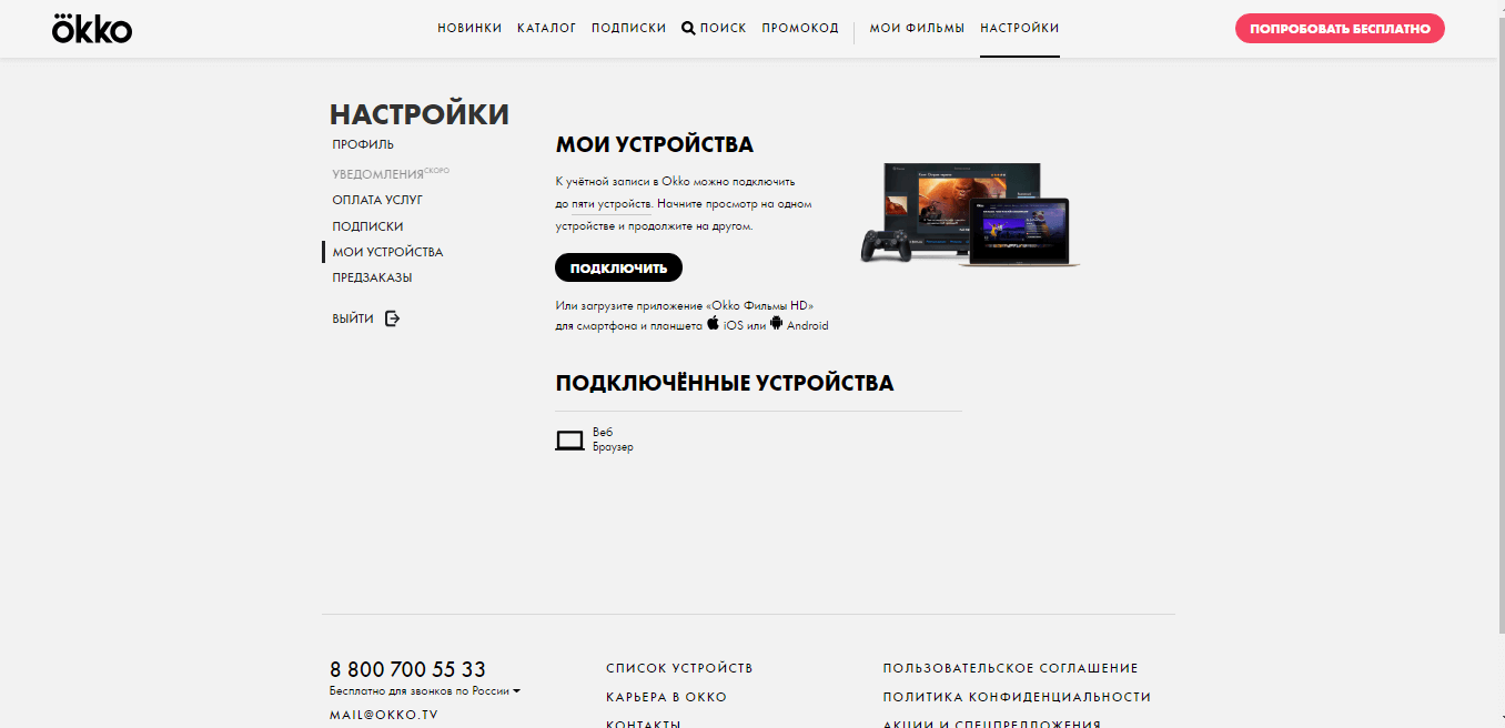 По заверениям разработчиков Okko, главное для них это предоставление зрителю высокого качества изображения и звука, для того чтобы вы получили наслаждение от кинотеатрального просмотра в домашних условиях.