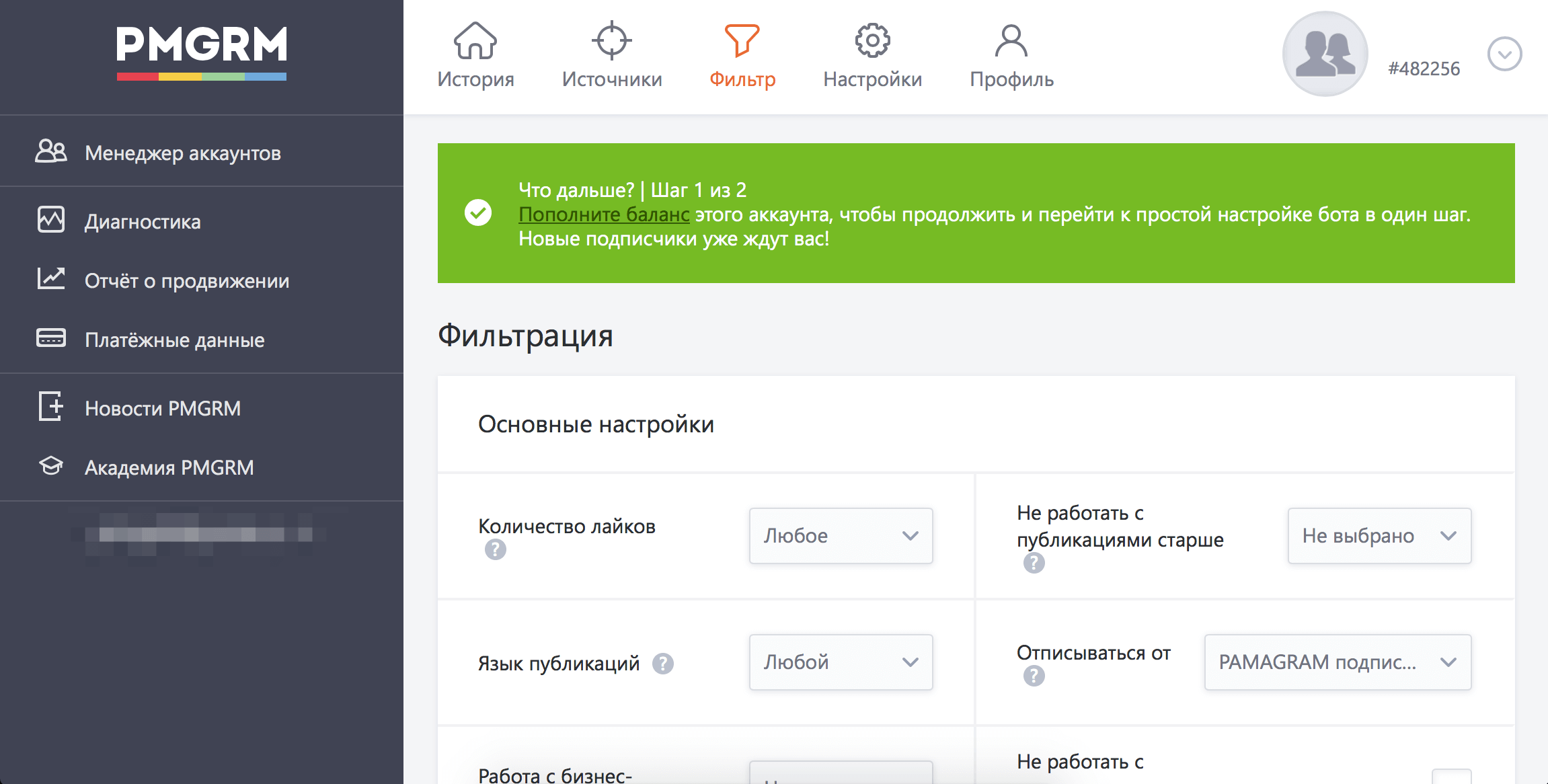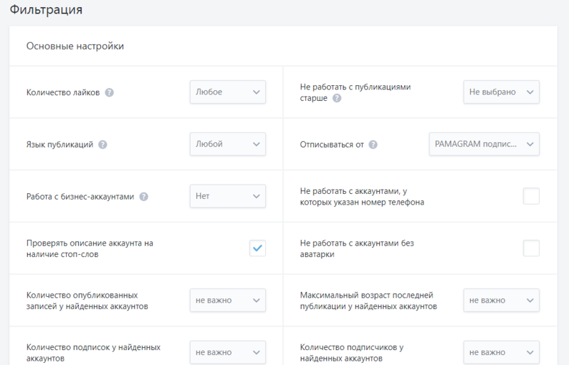 Во вкладке Фильтрация необходимо будет указать лимиты и ограничения работы сервиса. Например, можно задать возраст постов, с которыми не нужно работать или добавить черный список пользователей.