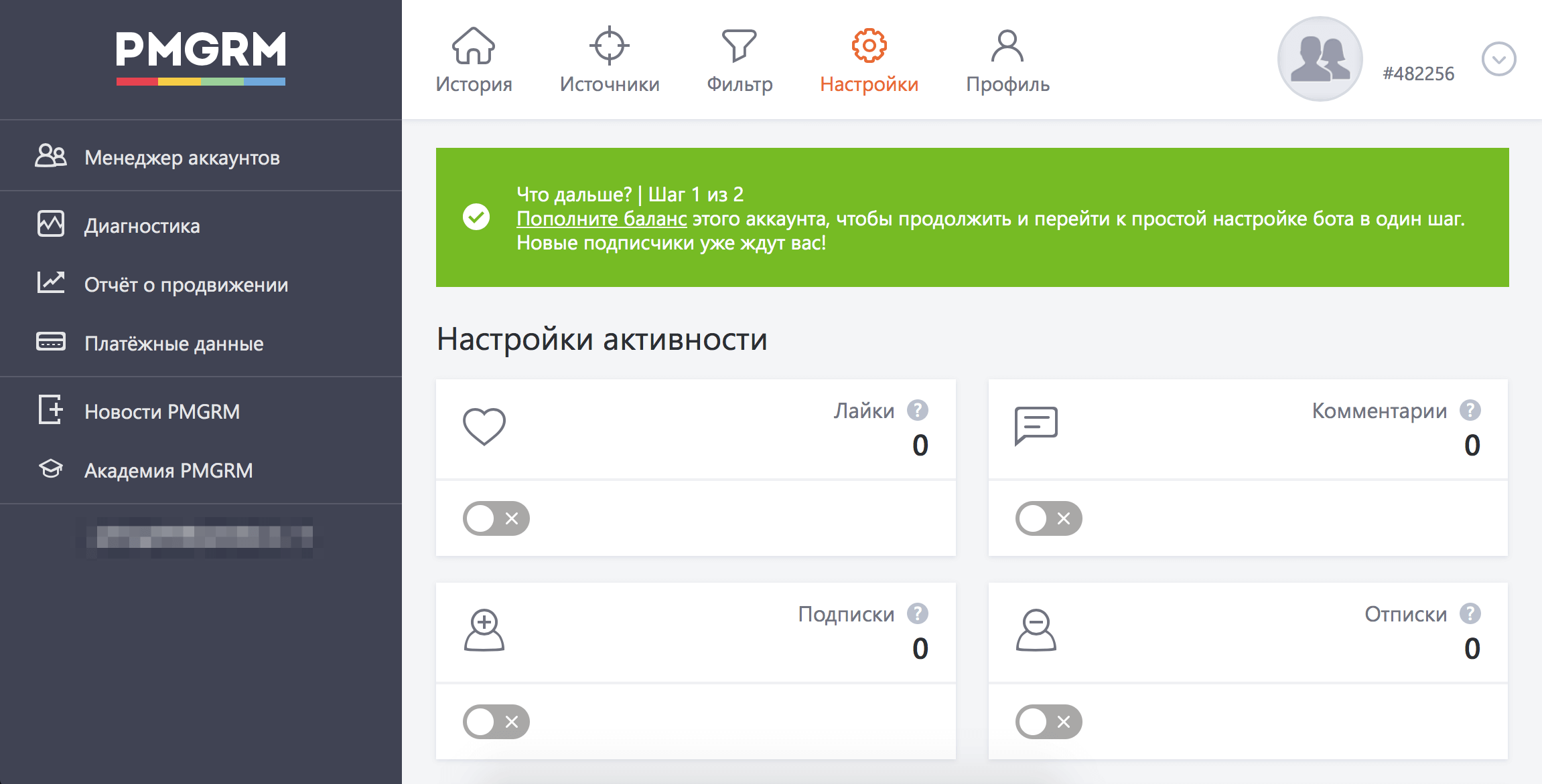 И теперь, чтобы начать раскрутку вашего аккаунта необходимо будет выполнить некоторые настройки.