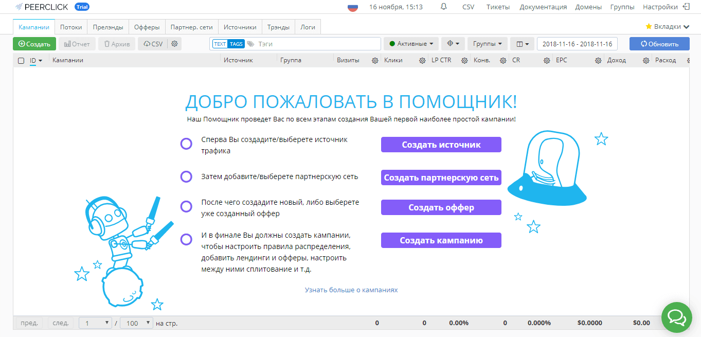 Следить за сотнями проектов вручную довольно тяжелая задача. Особенно если нужно срочно настроить более 10 источников трафика, а времени в обрез. Для автоматизированного контроля компаний как раз и был создан Peerclick, презентованный миру в 2017 году и успевший набрать неплохую популярность.