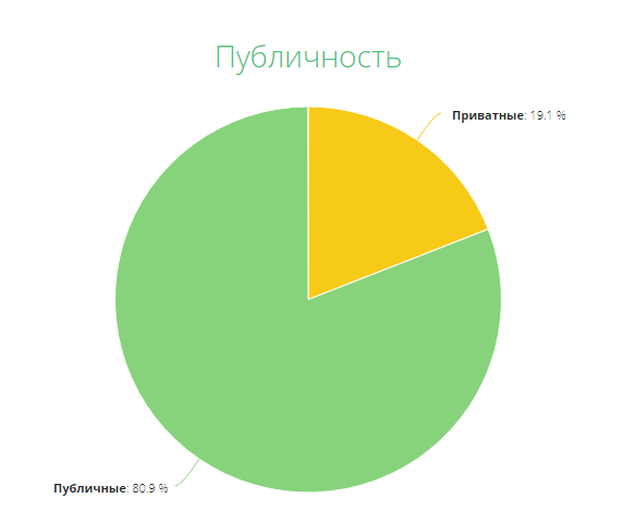 Диаграмма публичность покажет сколько открытых или закрытых аккаунтов подписано на вас. Это поможет выявить уровень заспамленности профиля.