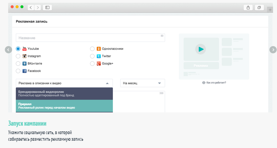 Укажите соцсеть, в которой вы хотите дать рекламу