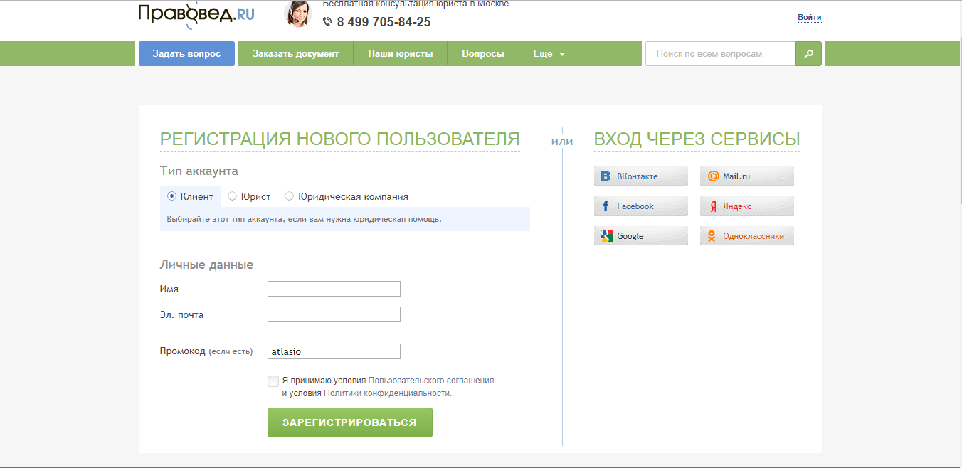 Правовед Ру — промокод на консультацию юриста