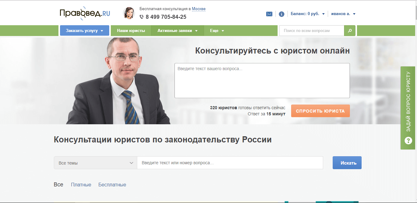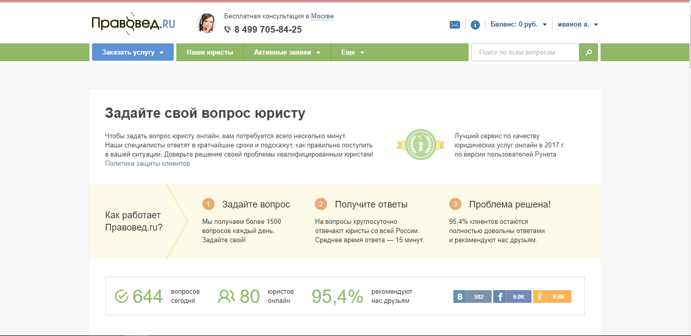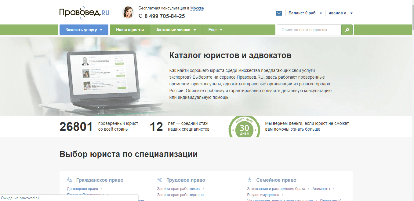 Сейчас создано огромное число юридических центров, которые ведут свою деятельность не только в офисе, но и в онлайн-режиме. Лидером в этом направлении является популярный сервис Правовед.ru.