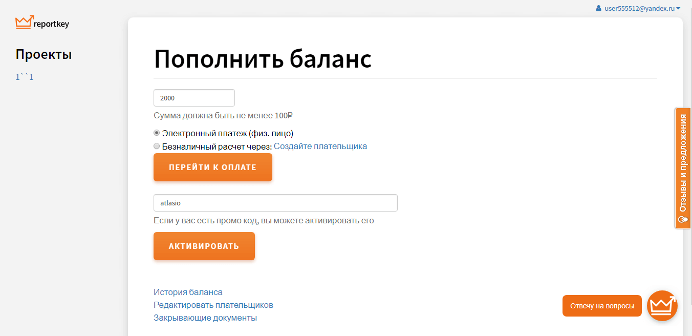 Зарегистрироваться в сервисе очень легко, достаточно ввести свою почту и придумать пароль. После подтверждения почтового ящика вы сможете пользоваться ReportKey бесплатно 14 дней. Далее нужно будет выбрать удобный для вас тариф: