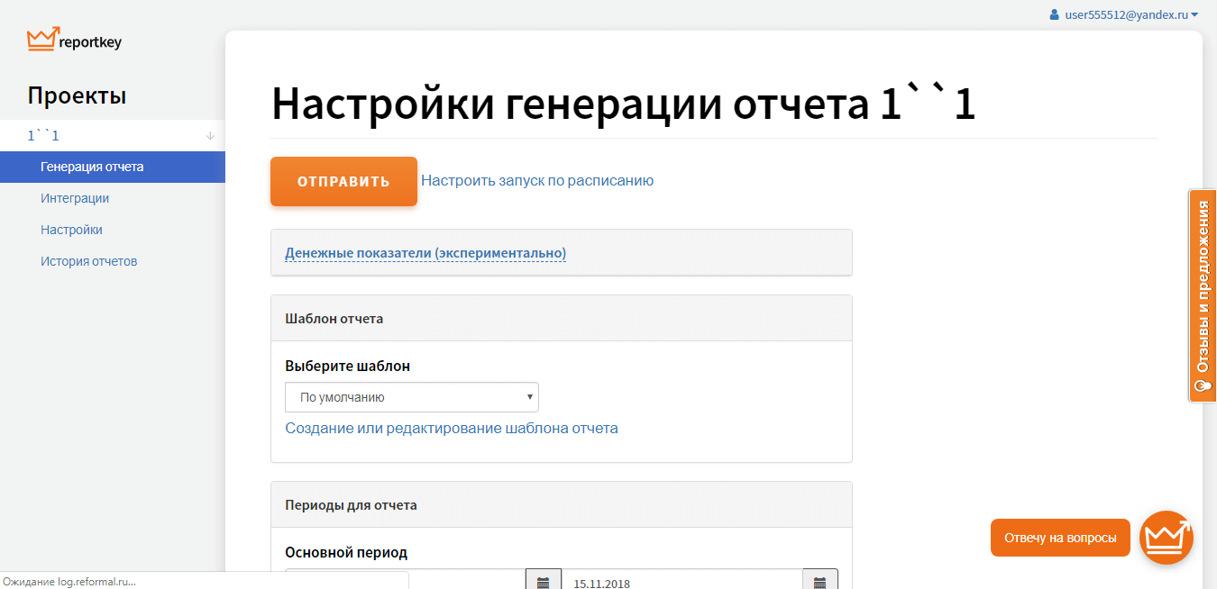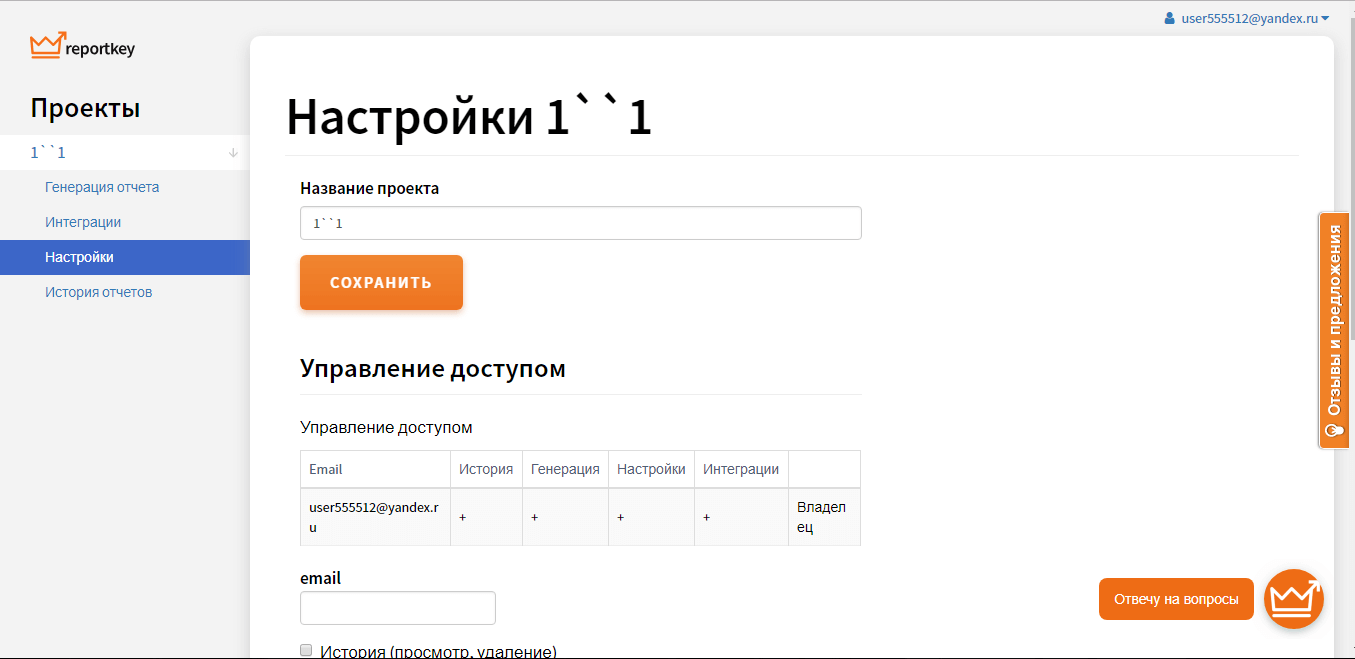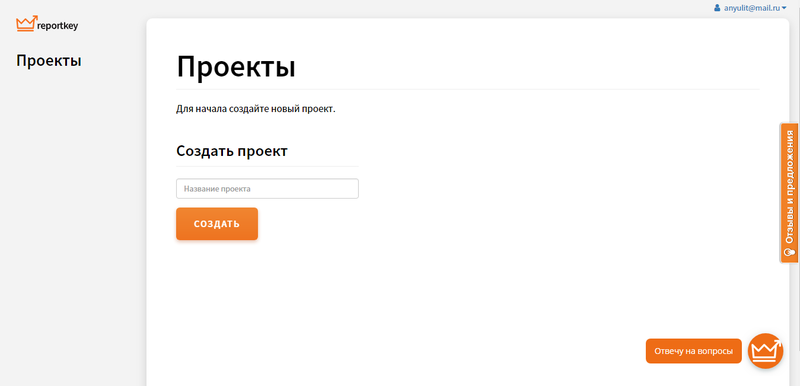 Чтобы начать пользоваться сервисом и создать свой первый отчет в ReportKey, необходимо создать проект.
