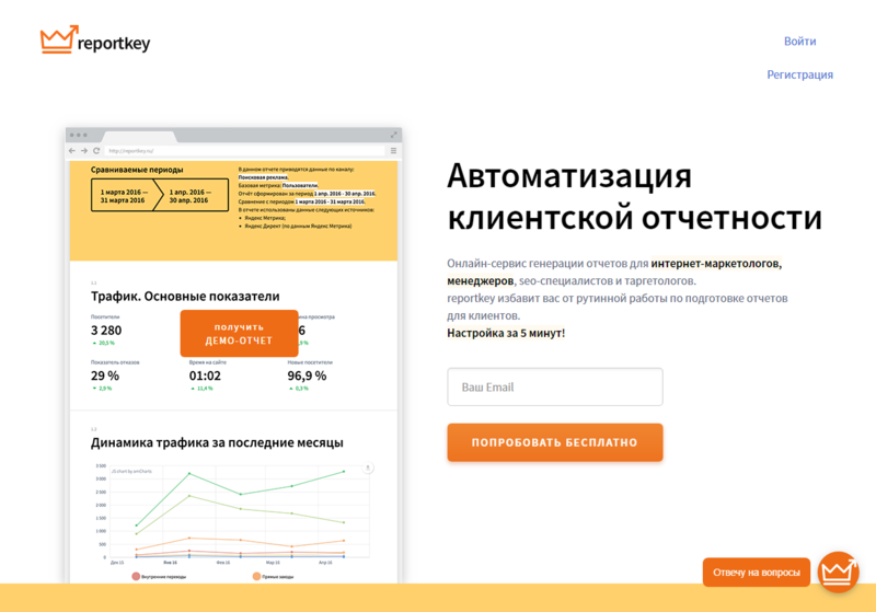 ReportKey представляет собой онлайн сервис, который позволяет оформить информацию из различных источников статистических данных и рекламных кабинетов в отчет за пару минут. Система предназначается для сокращения расходов компаний на создание отчетностей для клиентов без снижения качества.