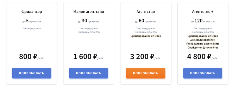 Для клиента можно установить особый шаблон отчетности, разместить в ней лишь необходимую информацию. Отчетности можно оформлять в фирменном стиле организации, добавлять в них выводы и план работ в следующем месяце. Созданную отчетность можно конвертировать в формат .doc и .pdf. Есть возможность получения гостевой ссылки для клиента, которую он сможет открыть даже на смартфоне.