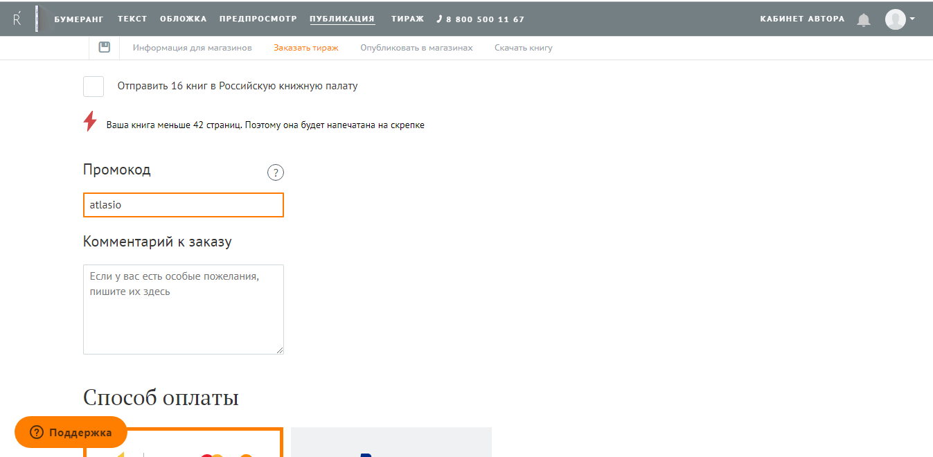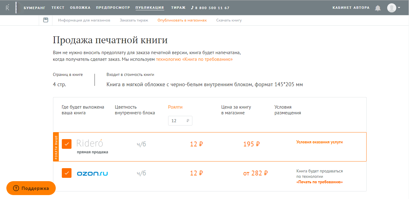 В меню имеется опция предварительного просмотра. Автор может полистать книгу, опробовать различные стили и шрифты, рассмотреть книгу со всех сторон.