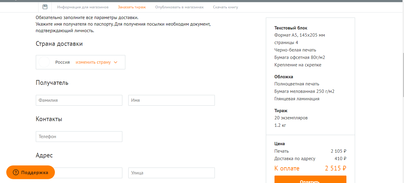 Для оформления договора на издание книги потребуется заполнить анкету, ввести данные паспорта. По завершении регистрации можно подобрать макет верстки, шаблонную обложку. После ввода имени автора и названия произведения требуется осуществить загрузку текста. При загрузке система автоматически распознает различные части произведения, создает оглавление. Однако иногда происходят сбои. По этой причине рекомендуется самостоятельно проверить макет, устранить возможные ошибки.