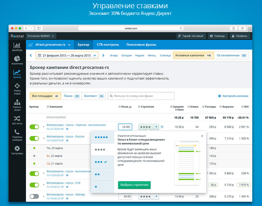 С Roistat вы не только сможете увидеть где у вас минус, но даже сможете на это повлиять!