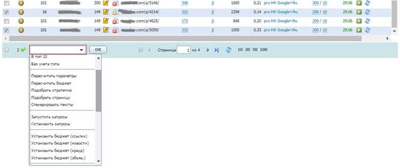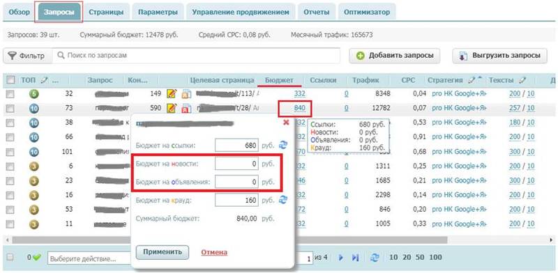 Изменению подвергаются значения ТОП, Бюджет и Стратегия. О бюджете и стратегии подробнее будет ниже.