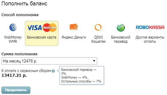 Надо помнить, что есть сервисный сбор. Для банковской карты – 3%, для WebMoney – 4% и для остальных способов оплаты – 7%.