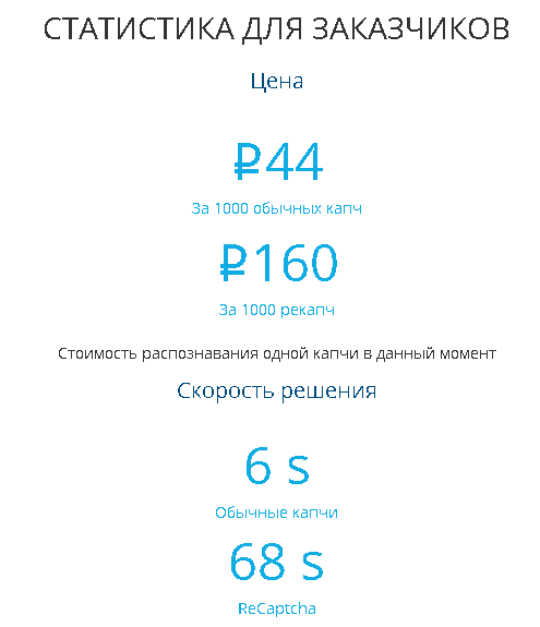Разумеется, услуги сервиса не являются бесплатными, все услуги, предоставляемые пользователям - являются ручным, качественным и многофункциональным трудом. Затрата человеческих ресурсов требует определенной оплаты, в среднем стоимость распознавания простой капчи составляет порядка трех копеек. На разные виды «CAPTCH» может устанавливаться отдельная стоимость, в зависимости от их сложности. В среднем стоимость распознавания 1000 простых каптч будет стоить 30-30 рублей. К простым относятся те виды, в которых необходимо просто осуществлять введение информации с графического изображения. Помимо сложности распознавания, на ценообразование влияют показатели нагрузки на сервер, соответственно, чем она выше, тем больше будет цена. Для того, чтобы узнать наиболее актуальную информацию по ценам необходимо ознакомится с данными в разделе статистики.