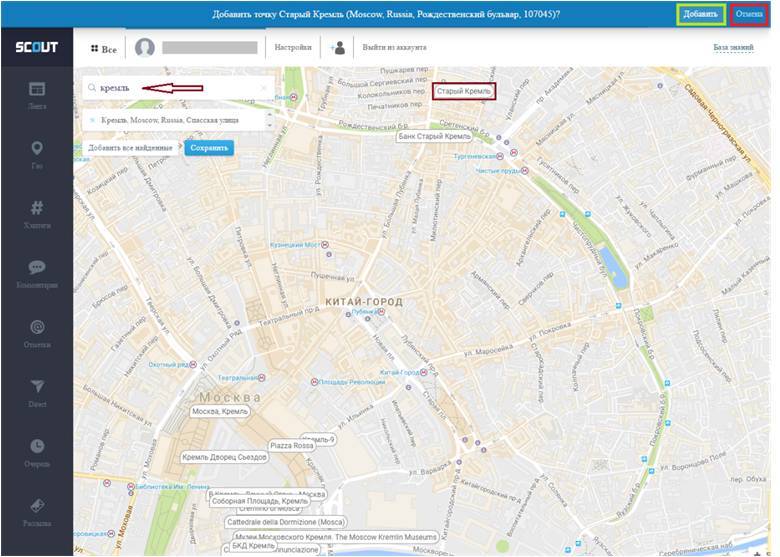 В поле поиска «Найти гео-точку» вы вводите наименование интересующей вас локации, затем находите на карте нужный вам объект, кликаете на него, после чего в верхней части экрана появится вопрос, о добавлении точки в список, и, при нажатии на «Добавить», точка появится в списке интересных вам гео-точек. После завершения работы вы можете сохранить весь список.