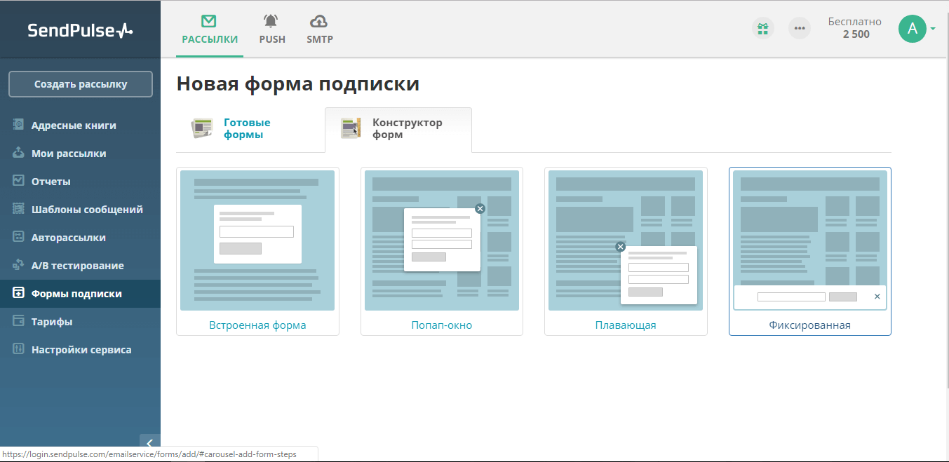 • Создание форм сбора подписчиков с ваших сайтов.