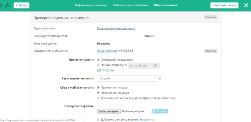 И начинаем рассылку!
