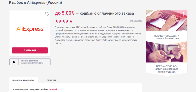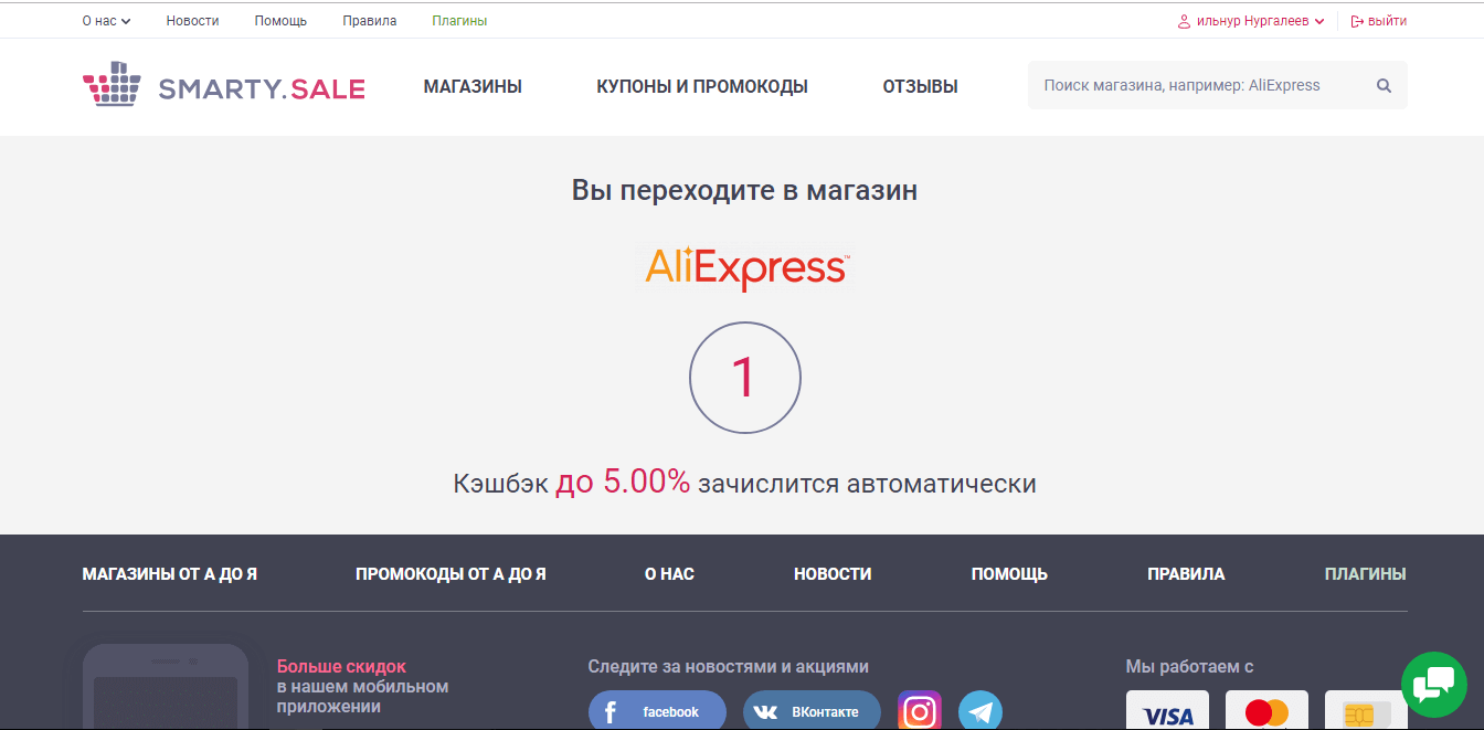 Самое первое, cashback, это возврат части потраченных денег на покупки в интернет-магазине. Эту сумму выплачивает сам продавец посредством сервиса Smarty.sale.