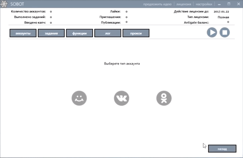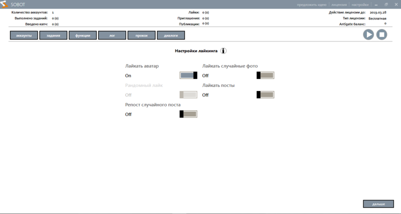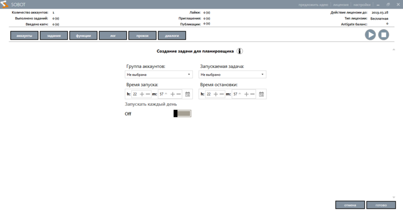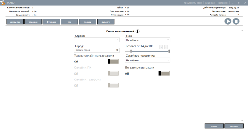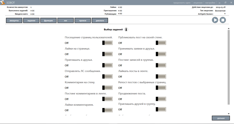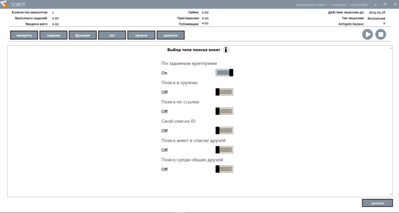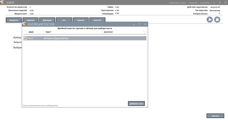 Одна из важнейших функций программы Sobot, направленная на работу с социальными сетями. Задача будет включаться и открываться автоматически при выборе других задач.