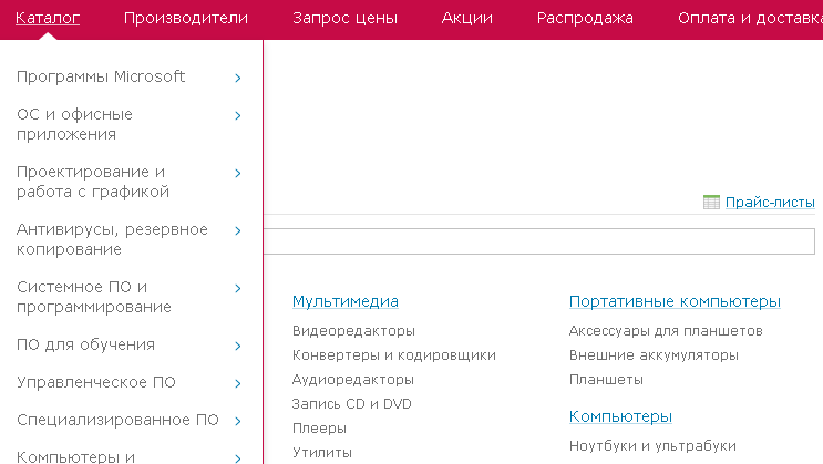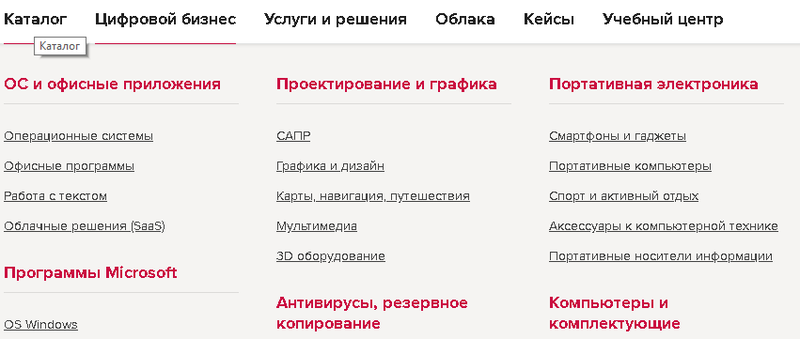 Компания имеет собственный интернет магазин, в который входит обширный спектр различной продукции, от цифровой техники, до интеллектуальной продукции. Вся продукция, реализуемая сервисом, является исключительно сертифицированной и лицензированной. Компания имеет собственную службу доставки, которая работает на все населенные пункты Российской федерации, продукция интеллектуального типа (электронные ключи, различное программное обеспечение и т.д.) доставляются через интернет ресурсы в максимально сжатые сроки.