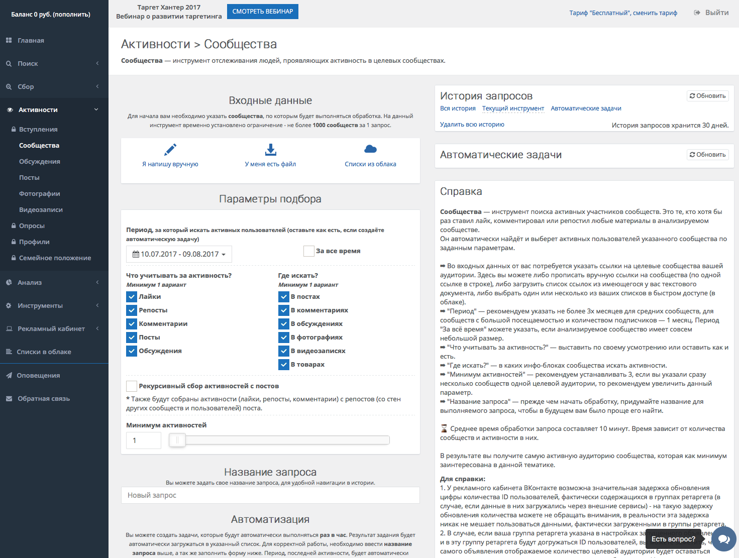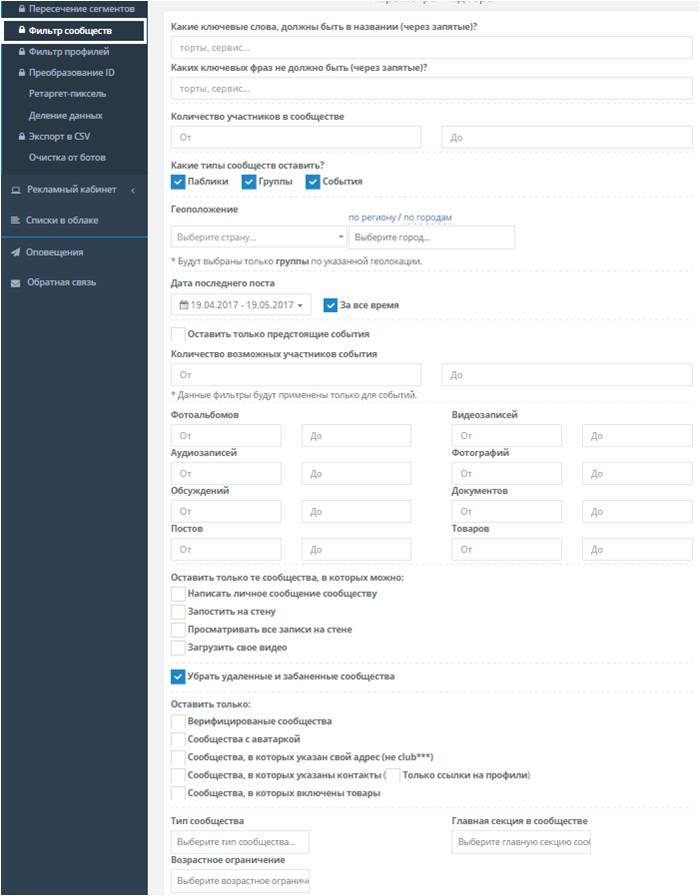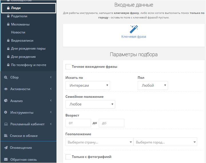 Для поиска целевой аудитории сервис предоставляет клиентам более 90 функций, в этом разнообразии каждый найдет то, что ему нужно.