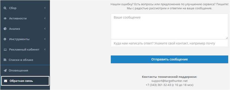 Поддержка клиентов в Target Hunter осуществляется при помощи мессенджера Telegram. После добавления Telegram- чата можно задавать вопросы или же писать свои пожелании относительно функционала.