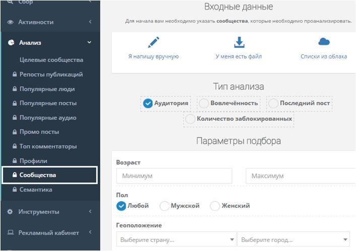 Даст понимание того, в каком сегменте ваша целевая аудитория преобладает. - «Фильтр сообществ»