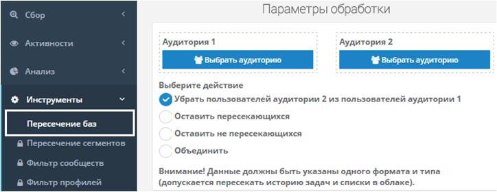 Поможет объединить базы, вычесть одну из другой, получить результат пересечения или обратное от пересечения. Например, у вас есть база матерей и пользователей, интересующихся йогой, тогда результатом пересечения этих баз будут матери, интересующиеся йогой.