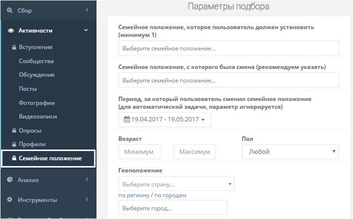Позволит найти людей, которые в своем профиле за указанный период сменили семейное положение.
