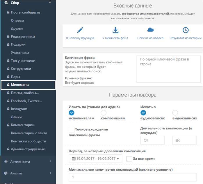 По ключевым фразам среди заданной вами аудитории будет осуществляться поиск ценителей музыки. Это узконаправленный поиск, но будет полезен тем, кто работает в музыкальной нише.