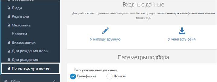 Есть возможность собрать профили людей, чьи номера телефонов или адреса электронных почт у вас имеются.