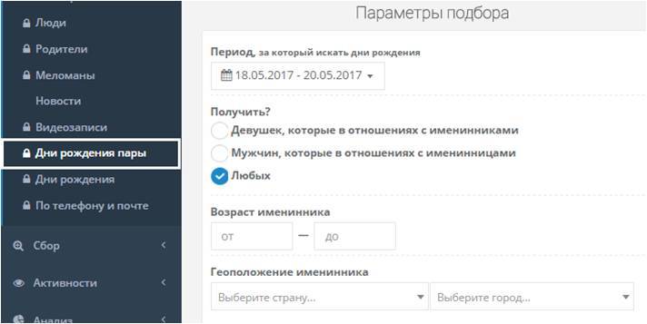 Происходит поиск именинников среди пар (т.е. в статусе в ВКонтакте они отмечены как пара).