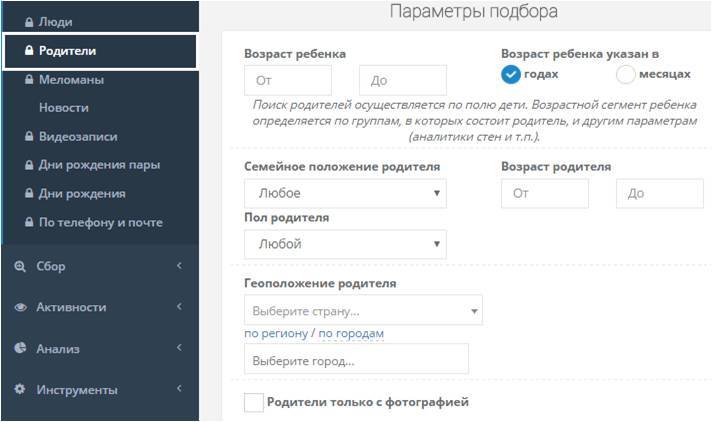 Можно провести поиск родителей по возрасту их детей.