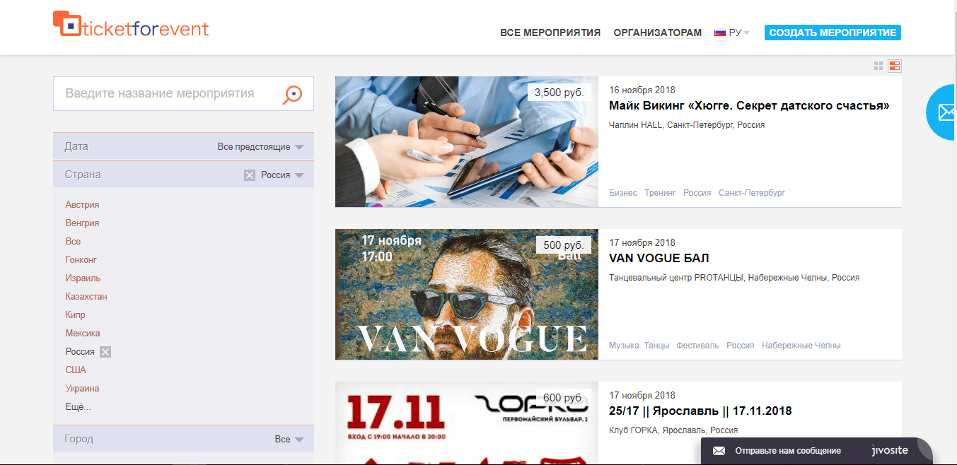 Платформа рассчитана на взаимодействие не только с небольшими организаторами, но также и с клиентами, занимающимися организацией крупных мероприятий развлекательного, обучающего, познавательного и прочих направлений.