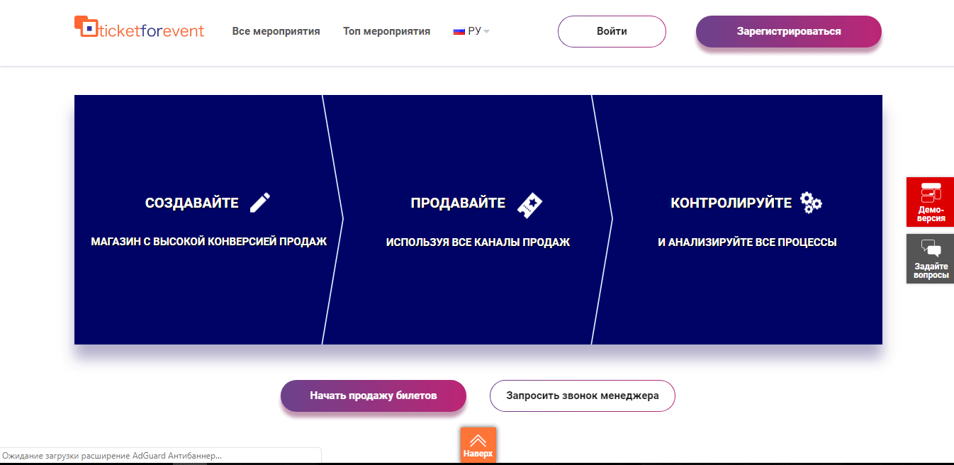 Сервис «TicketForEvent» позволяет не только создавать онлайн площадки для распространения билетов с высокими показателями конверсии, осуществлять распространение по многоканальным направлениям, но также и осуществлять контроль всех процессов. Клиент имеет возможность круглосуточно отслеживать, и контролировать все события через стигму трекинга и аналитики.