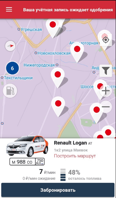 Запустив приложение, нужно будет открыть карту, где высвечены все ближайшие к вам автомобили.