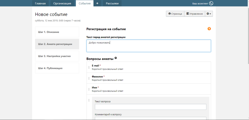 - Добавляем регистрационную форму для пользователей. К существующим стандартным вопросам вы можете добавлять свои.