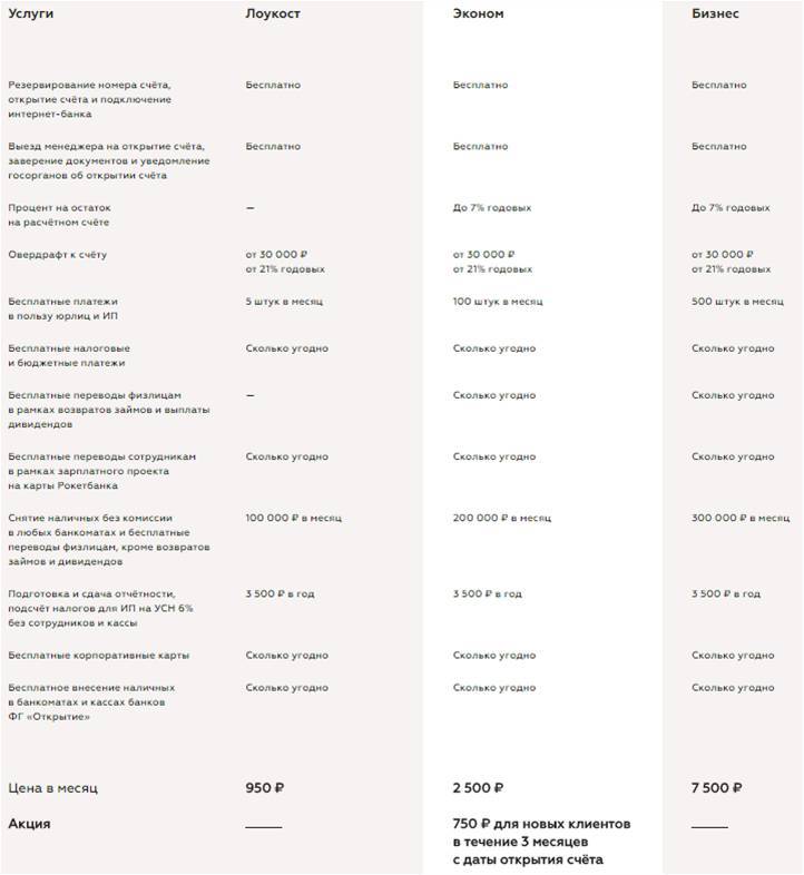 Эти услуги актуальны в нынешнее время, т.к. многие предпочитают расплачиваться картой и не хотят возиться с наличкой. Подключение всех трех услуг бесплатно и возможно в интернет-банке. - Зарплата сотрудникам. Подключение услуги, как и подписание документов, происходит в интернет-банке. Карты выпускаются и доставляются сотрудникам совершенно бесплатно. Перечисление зарплаты возможно на карты Рокетбанк и Точки в режиме онлайн в день перечисления за 5 минут, возможно переводить зарплату и на карты других банков. Снять зарплату можно в банкоматах любого банка без комиссии. Эта опция интегрирована с 1C. Комиссия за перечисление с картами Рокет и Точка составляет 0 и 0,55% соответственно.