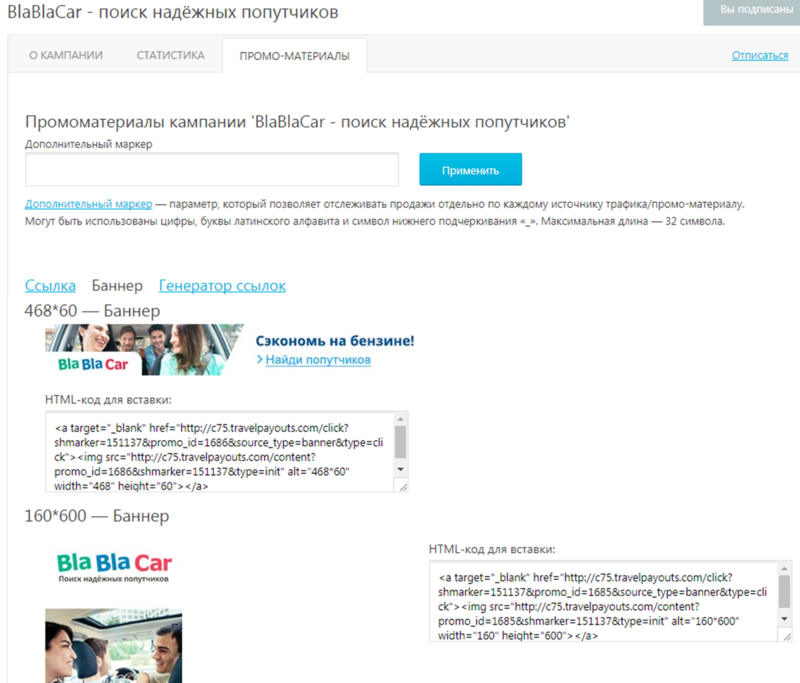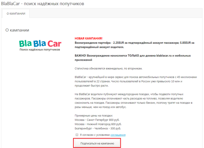 Кампаний более 20, в их числе: BlaBlaCar – поиск попутчиков, AutoEurope.ru – аренда авто по всему миру, tutu.ru – продажа ж/д билетов онлайн, ЛитРес – магазин электронных книг и прочее. Вознаграждение у каждого партнера свое, ознакомиться с точными цифрами можно на сайте.